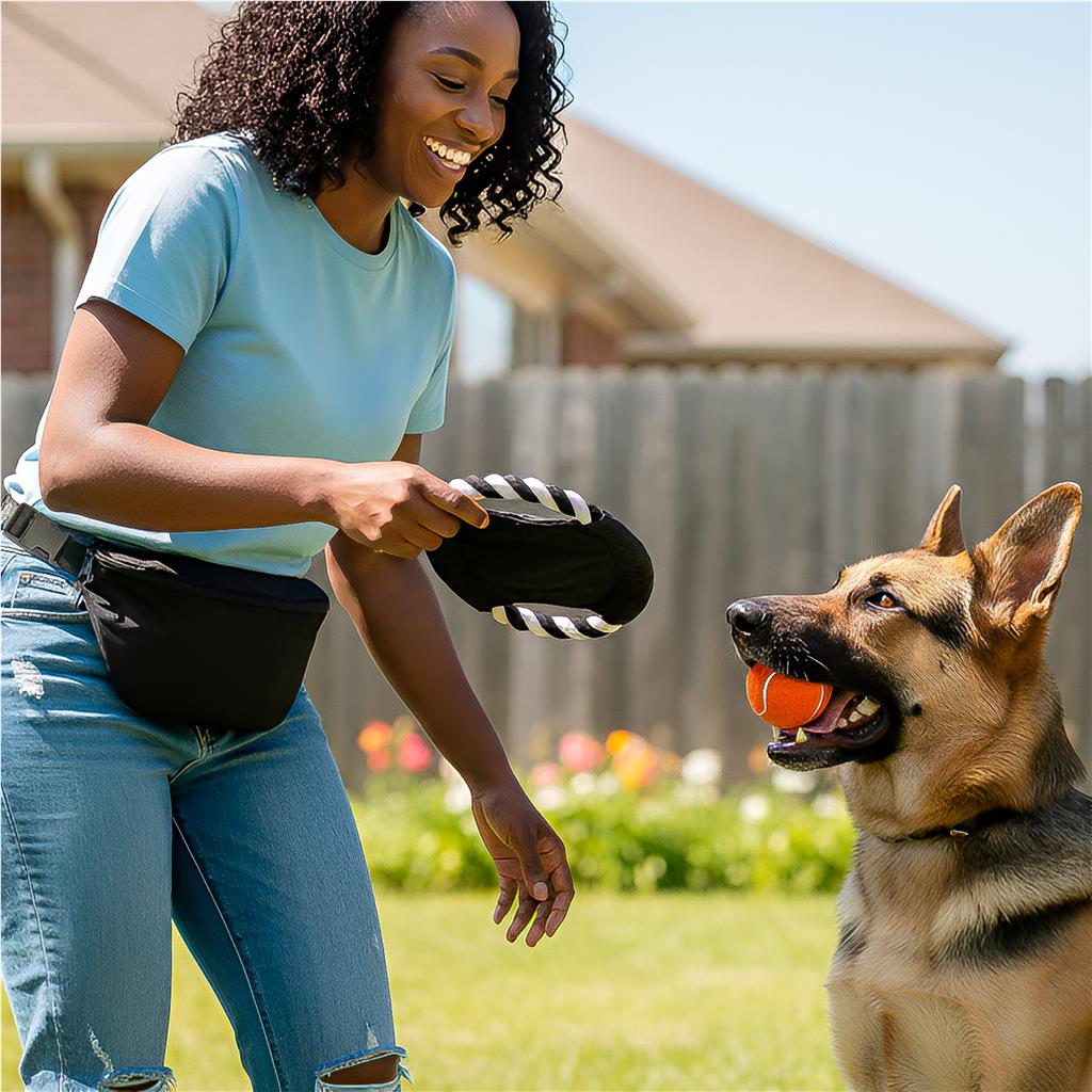 Stay hands-free and fully equipped for playtime with this all-in-one pet adventure set. The black crossbody bag comes pre-packed with a durable black pet frisbee and a pet-safe colour ball, making it a functional companion for park strolls, beach days, or spontaneous games with your pet.