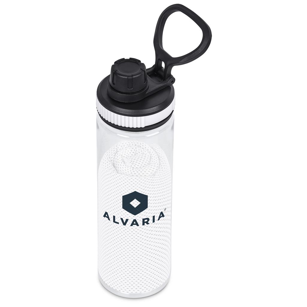 Stay cool and refreshed on the go. This practical 2-in-1 set includes a durable reusable water bottle with a microfibre cooling towel inside. Simply soak, wring, and snap the towel for instant relief. With branding available on both the bottle and towel, it’s an ideal promotional gift for gyms, wellness campaigns and sports events.